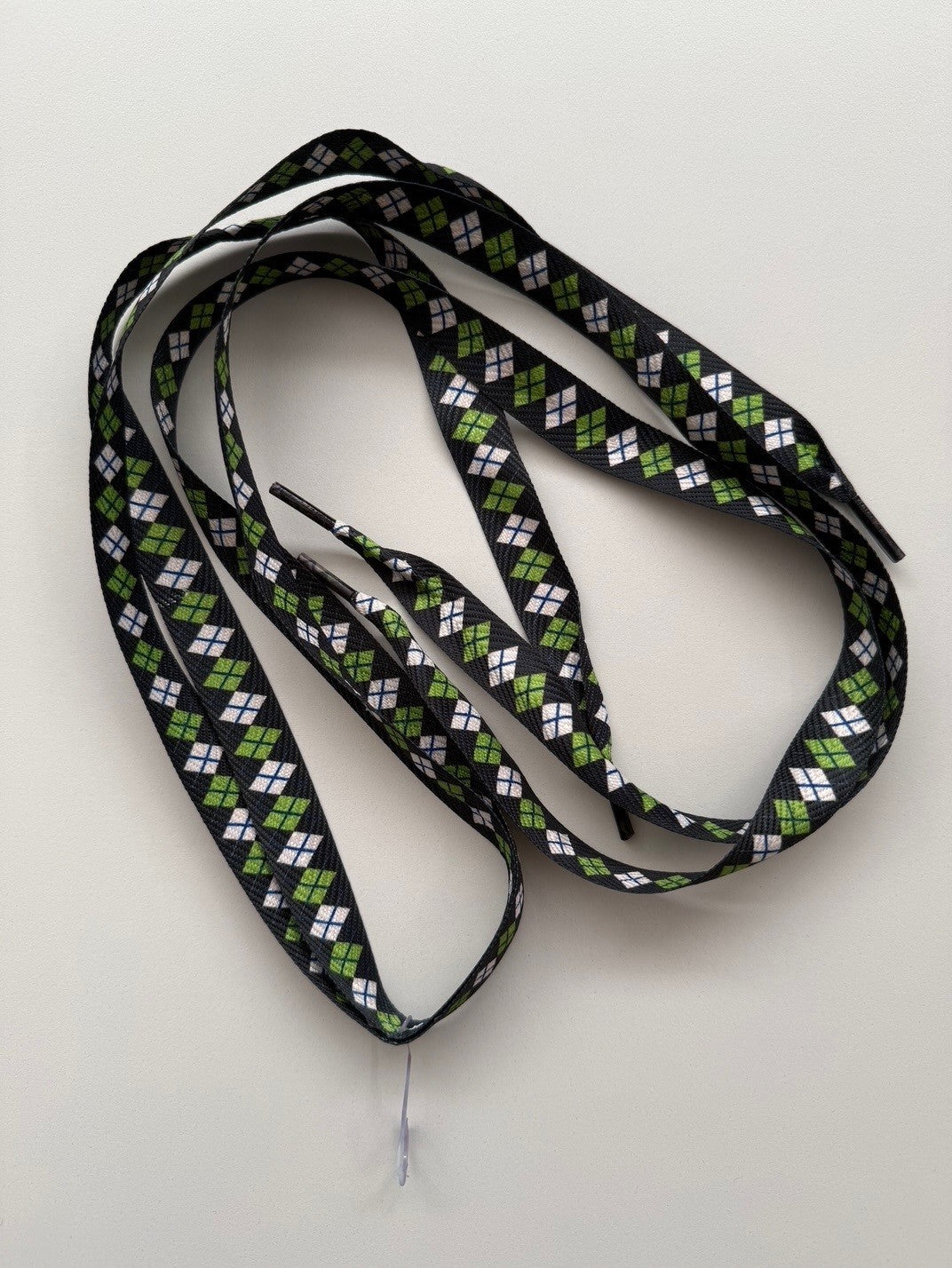 100 Paar Schnürsenkel - Schwarz/Grün/Weiß im Rautenmuster - Flachsenkel für Sneaker & Sportschuhe