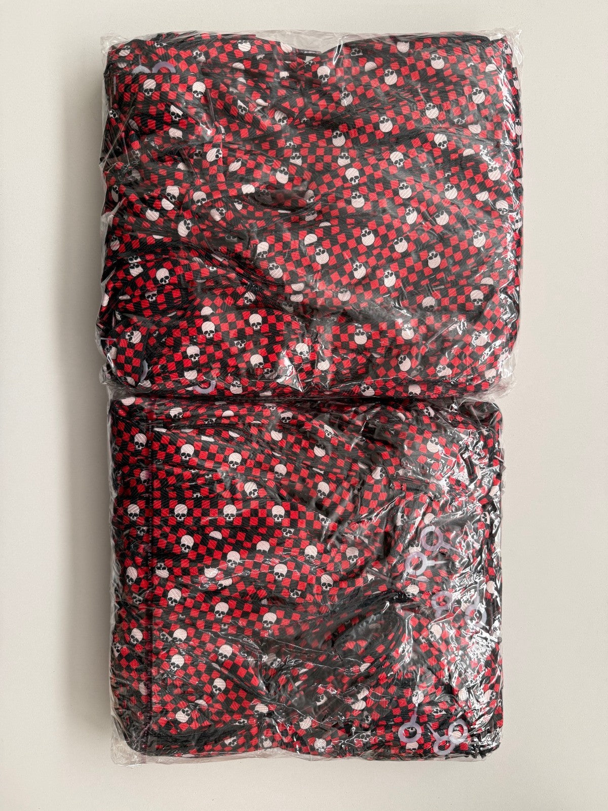 Farbe: Schwarz/Rot kariert mit weißen Totenköpfen