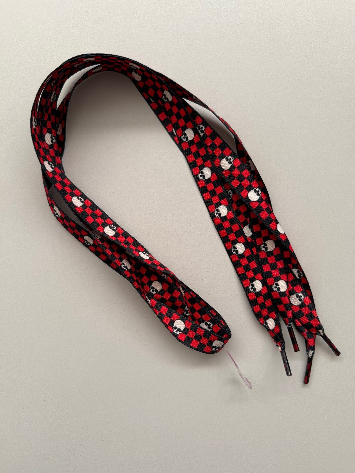 100 Paar Schnürsenkel - Schwarz/Rot Kariert mit Totenkopf-Design - Flachsenkel für Sneaker & Sportschuhe