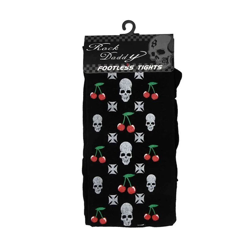 1x Schwarze Strumpfhose Totenkopf Kirschen Footless Gothic Punk Rock Leggins