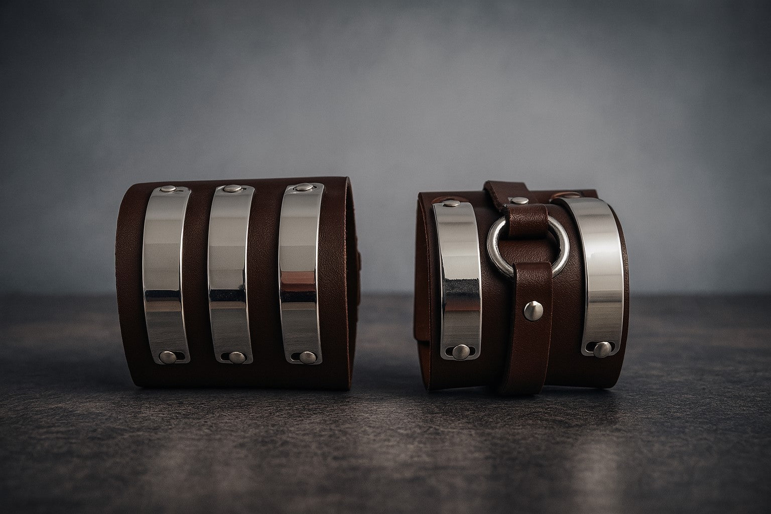 2er Set Lederarmband Dunkelbraun Unisex Biker Rocker Gothic Punk Festival Rock