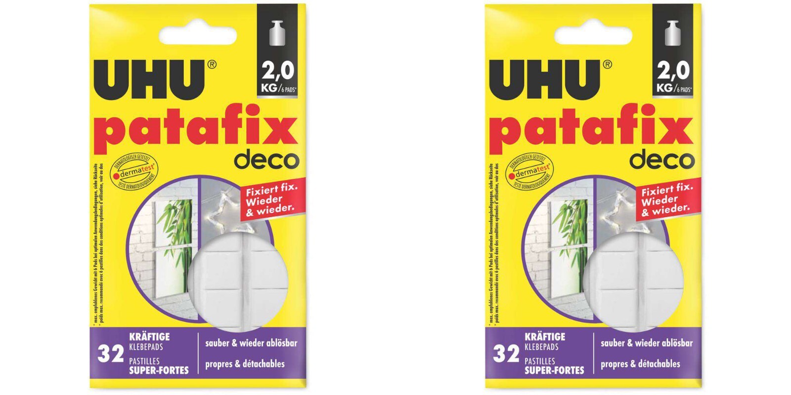 Erleben Sie die vielseitige Verwendung mit dem UHU Patafix Deko Alleskleber, ideal für Anwendungen auf Glas, Holz und Kunststoff. Dieses Pack enthält zwei Packungen mit je 32 Stück des hochwertigen, weißen Klebstoffs, der sich durch seine saubere und wieder ablösbare Eigenschaften auszeichnet. Ob für die