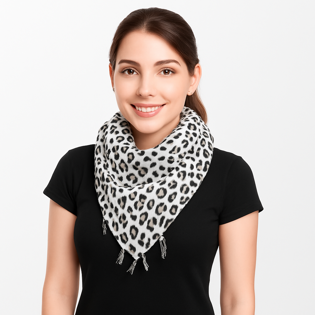 Bring Farbe und Muster in deinen Look! Dieses Set aus 3 trendigen Halstüchern im Leopardenmuster vereint Fashion, Komfort und Vielseitigkeit. Jedes Tuch kommt mit einzigartiger Farbgebung und charmanten Details wie Pompons oder Fransen - perfekt für den Boho-, Safari-, Retro- oder Festival-Stil .