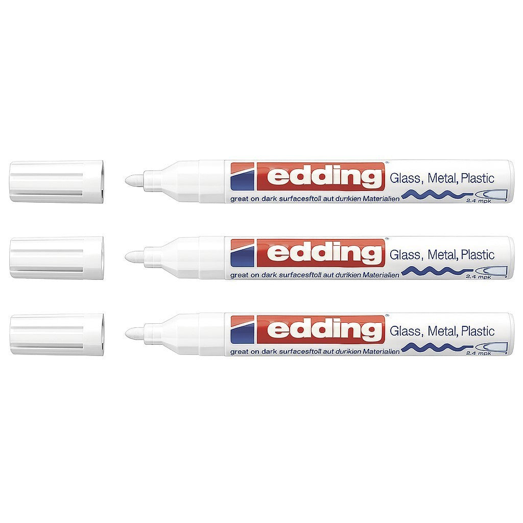 3x Edding 750 Glanzlackmarker Weiß - 2-4 mm Rundspitze | Wasserfest & deckend