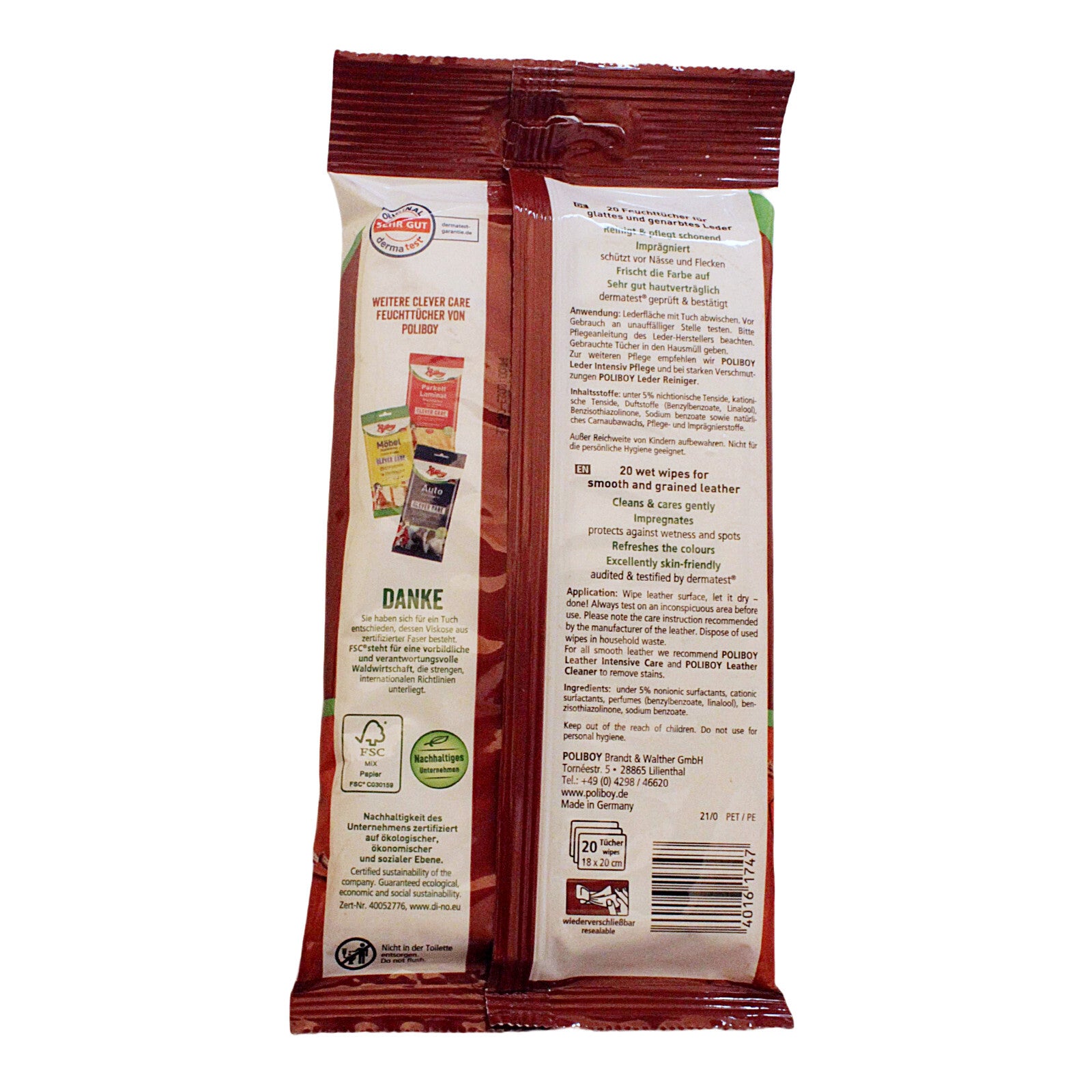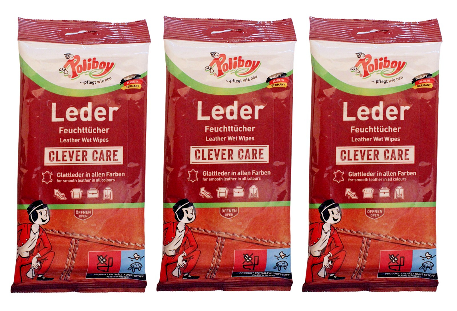 3x Poliboy Lederpflege Feuchttücher (je 20 Stück) - Reinigung & Schutz für Leder