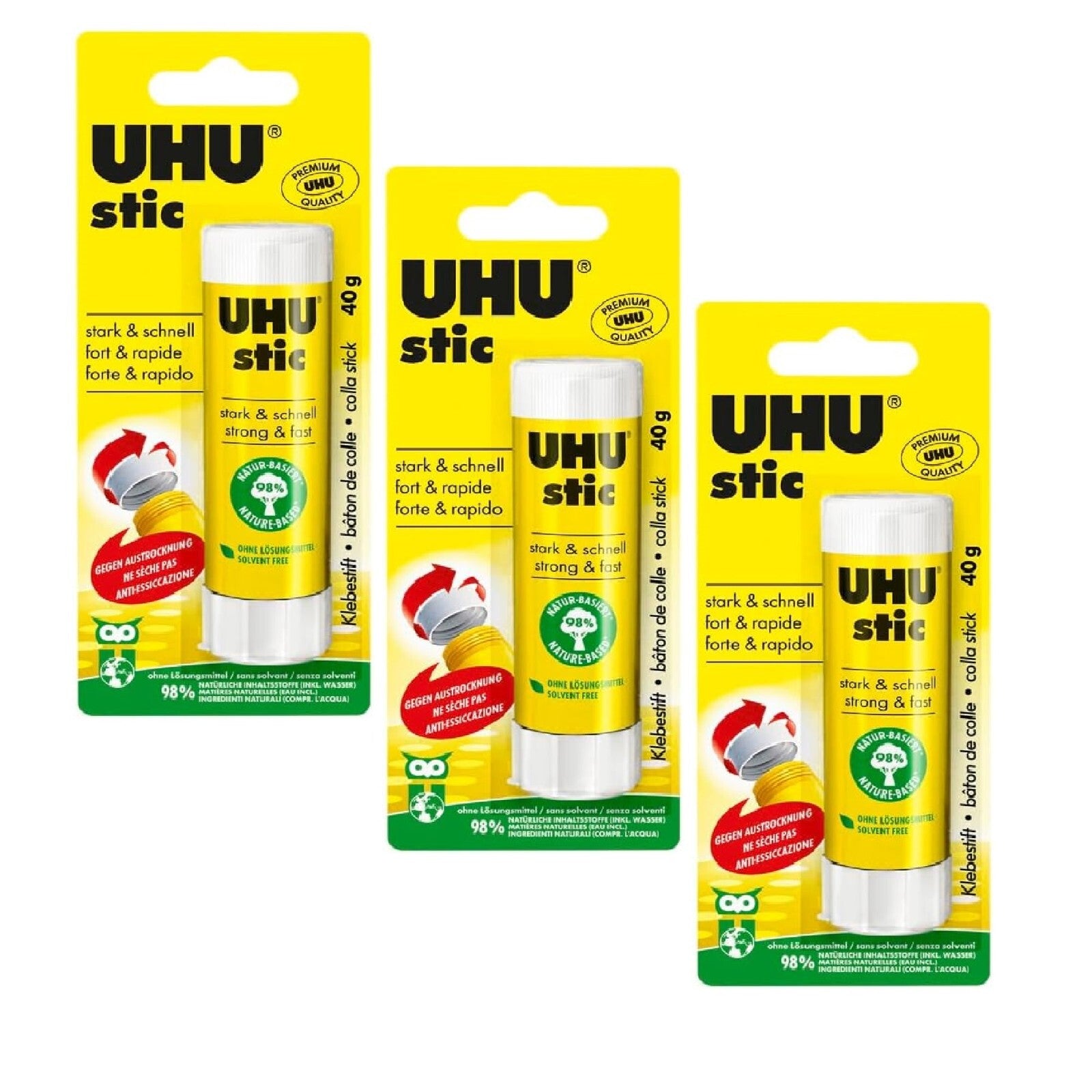 3x UHU Stic fort & rapide 40g Klebestift Bürobedarf Schule Bastelarbeiten