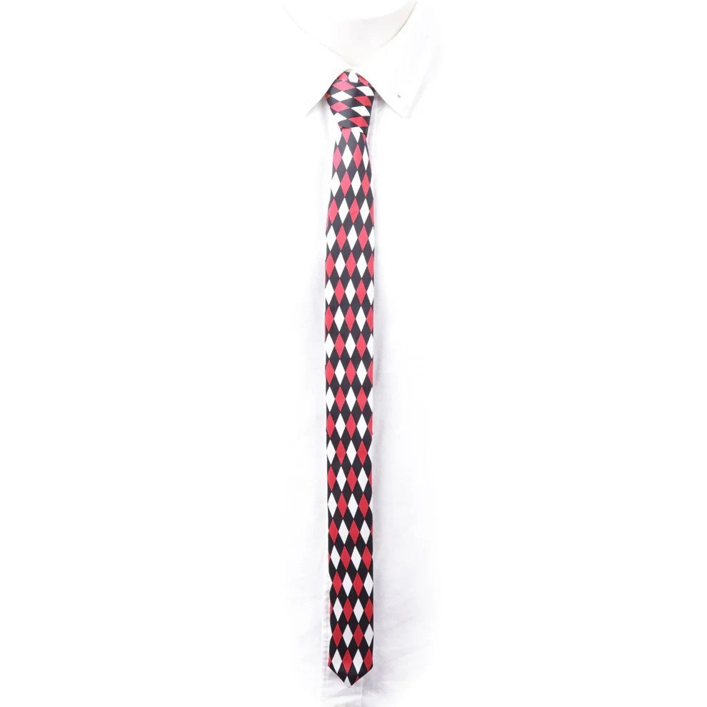 Elegante Herren Krawatten - Schwarz/Weiß/Rot Rauten-Muster - Schmal & Stilvoll in Satinoptik