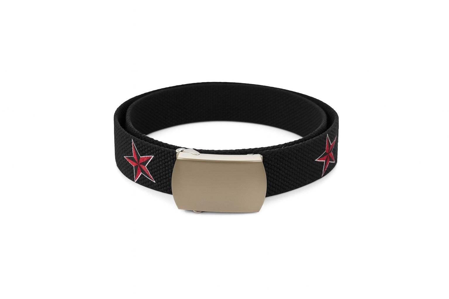 Design: Schwarzer Gürtel mit roten Stern-Motiven ⭐