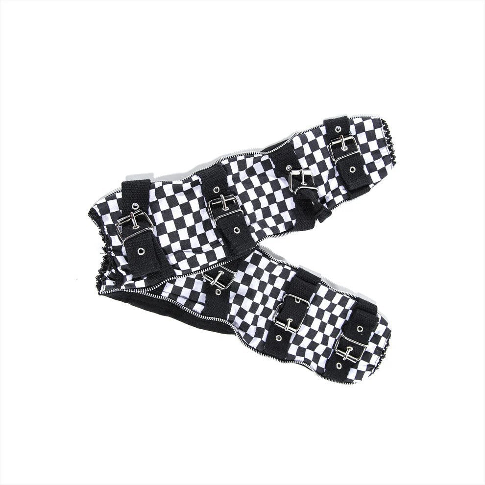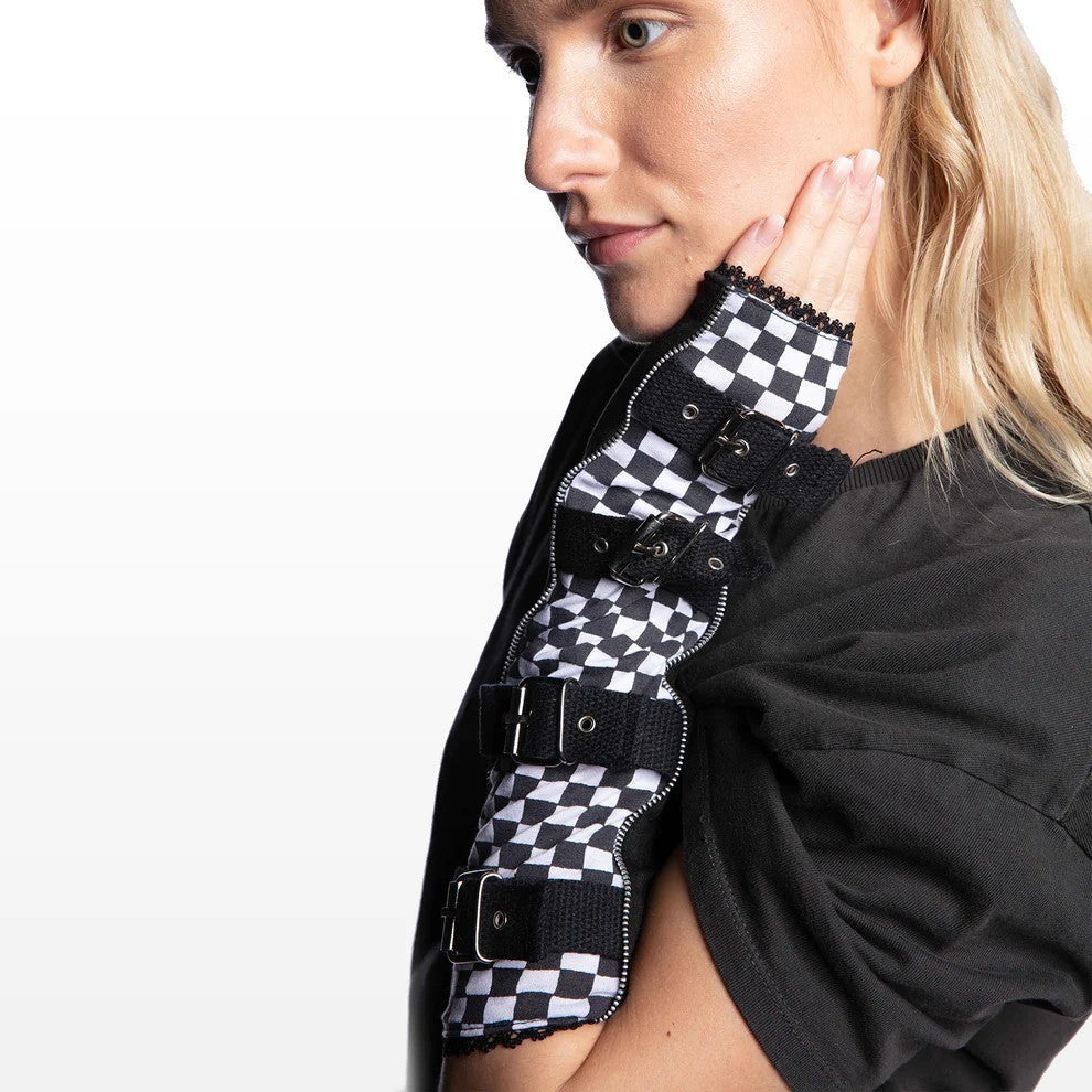 Armstulpen mit Metallschnallen Schwarz Weiß Schachbrett Karo Gothic Punk Rocker