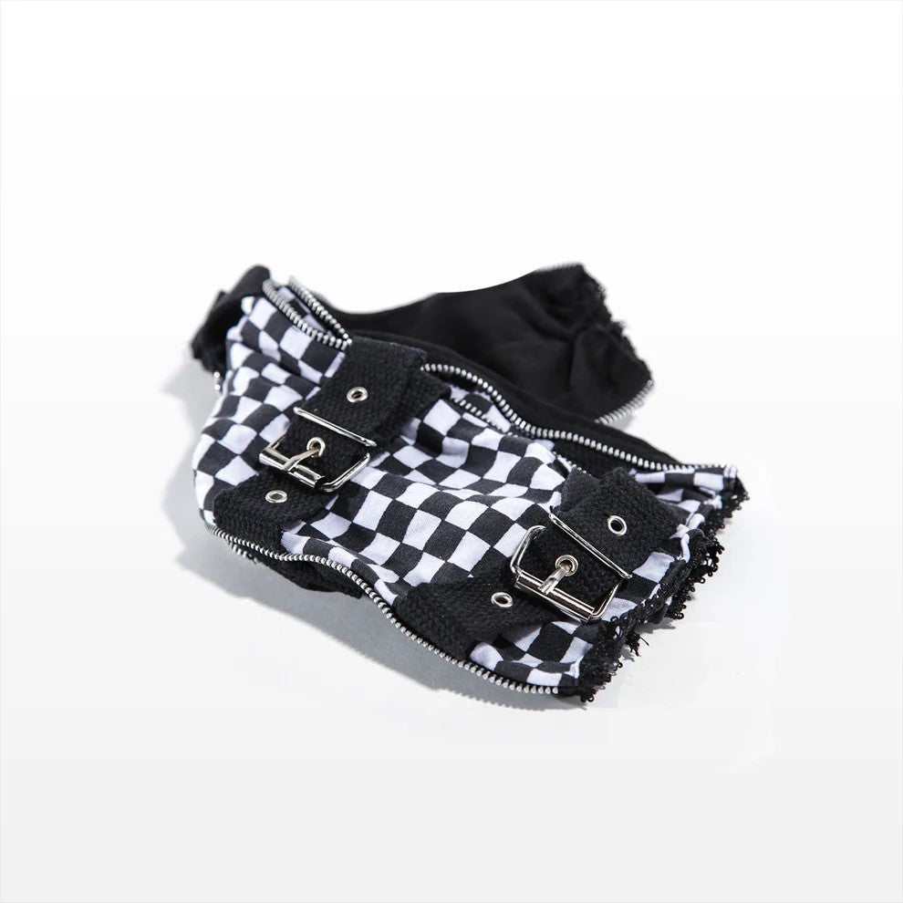 ♟️ Rock Daddy Armstulpen - Karo Design mit Metallschnallen | Unisex Gothic Punk Style ♟️