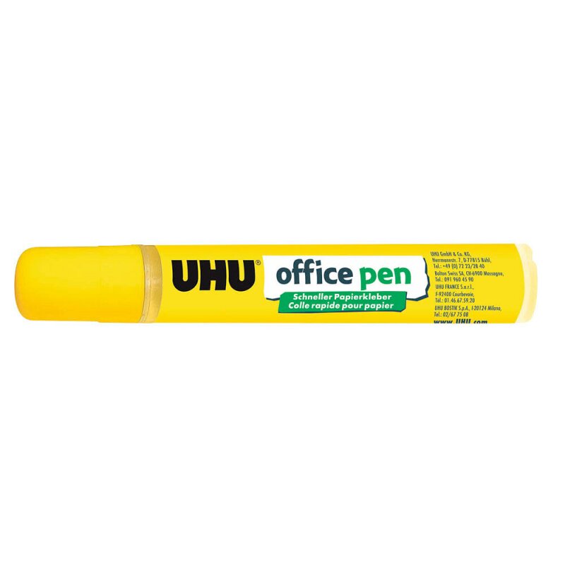 - 1 UHU Office Pen Alleskleber (60,0 g): Dieser umweltschonende Alleskleber klebt Papier, Pappe, Fotos und Styropor ohne Lösungsmittel. Er wellt das Papier nicht und ist kalt auswaschbar. Der handliche Stift mit praktischem Verstreichkopf ermöglicht einen sparsamen und sauberen Klebstoffauftrag – so einfach wie ein Klebestift!