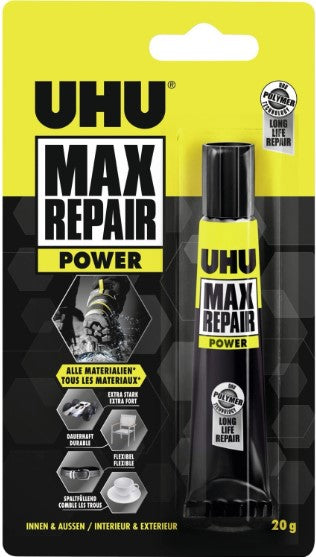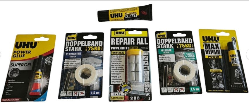 - 1 Tube UHU Max Repair Power: Für besonders anspruchsvolle Reparaturen! Dieser Hochleistungs-Kleber sorgt für extrem starke Verbindungen und ist ideal für schwerere Materialien.