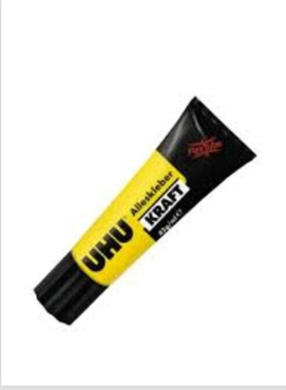 - 1 Tube UHU Alleskleber Kraft: Der vielseitige Alleskleber ist ideal für eine Vielzahl von Materialien wie Holz, Papier, Karton, Stoff und viele Kunststoffe. Er bietet eine starke Haftung und ist einfach in der Anwendung.